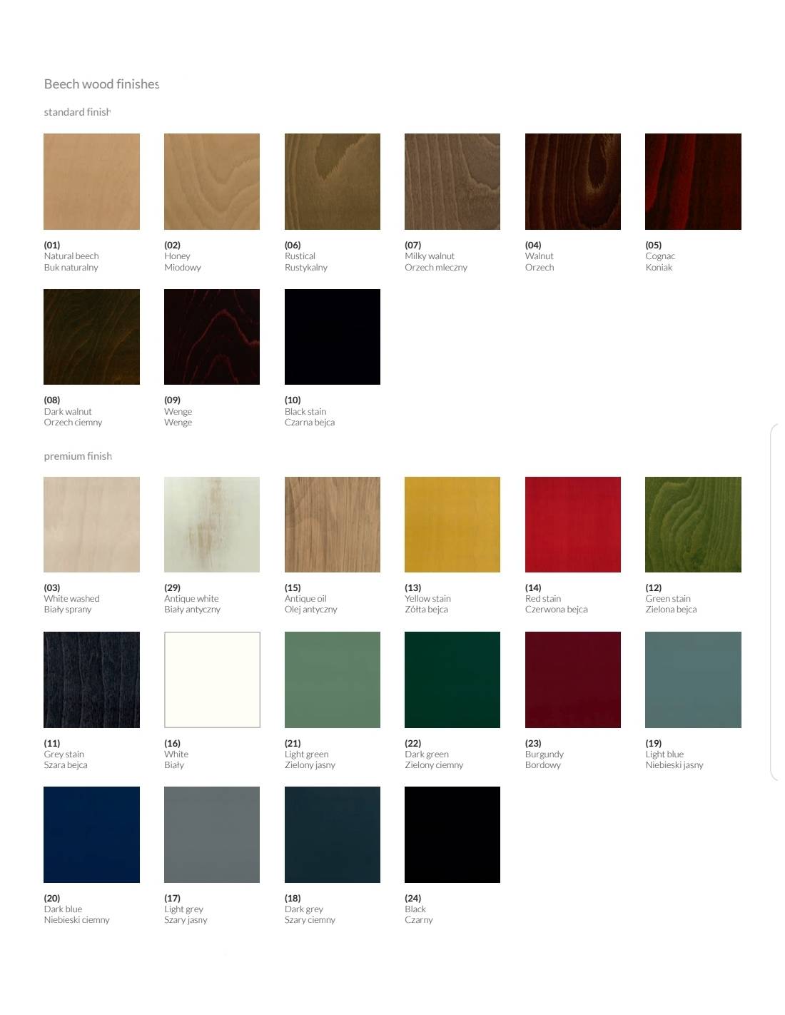 Diferentes acabados a elegir para la madera, acabado Premium opcional.