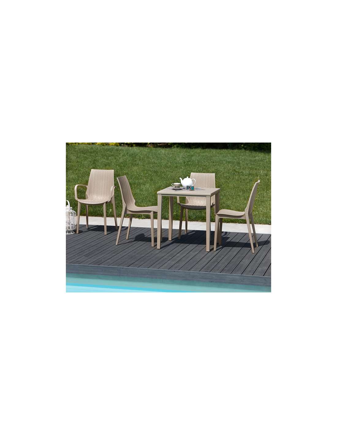 Silla Lucrezia estructura, asiento y respaldo de Tecnopolímero efecto tejido y reforzada con Fibra de vidrio.